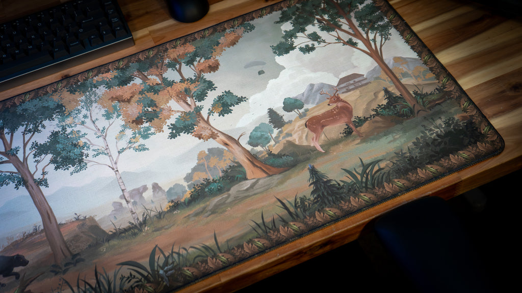 Find peace amidst chaos with The Sanctuary, an official Rust collaboration between Epic Desk and the world-renowned Rust YouTuber Frost. This limited-edition deskmat blends the harsh survival world of Rust with serene, painterly beauty, a moment of stillness framed by danger, where nature and decay coexist.